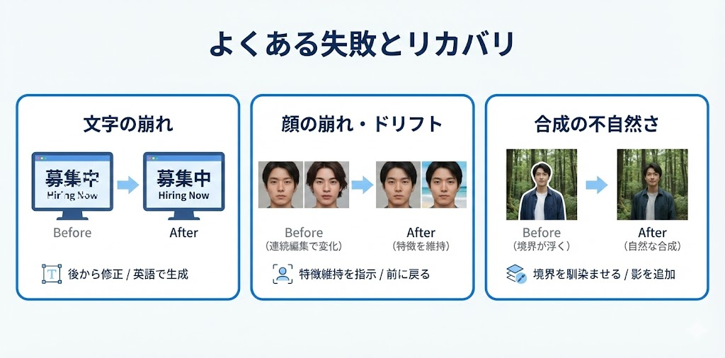 よくある失敗とリカバリ(文字・顔・合成の崩れ)
