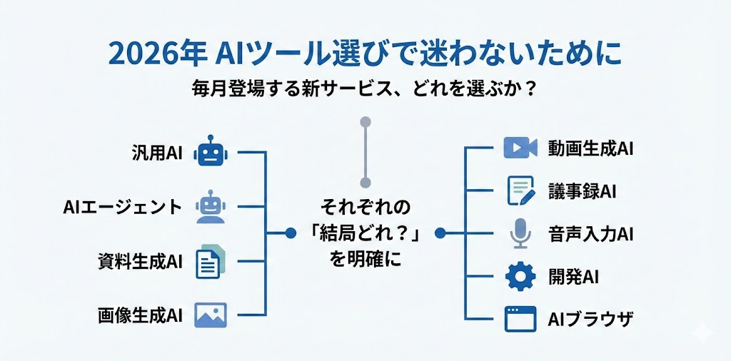 「AIツールが多すぎて、結局どれを使えばいいか分からない」——そんな悩みを抱えていませんか?