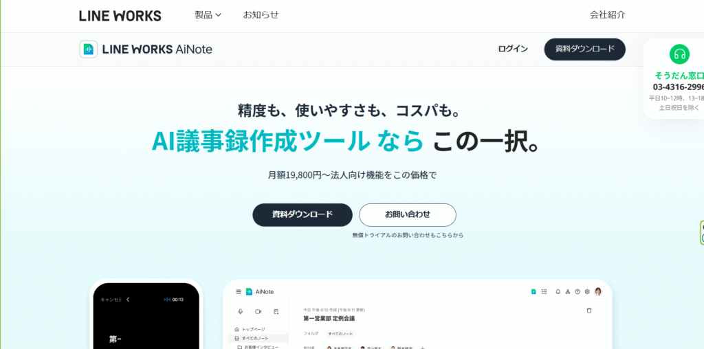 ③LINE WORKS AiNote – オフライン会議ならこれ