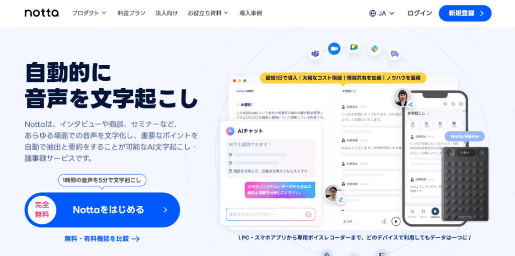 ①Notta – 総合力No.1!誰にでもおすすめできる高精度ツール