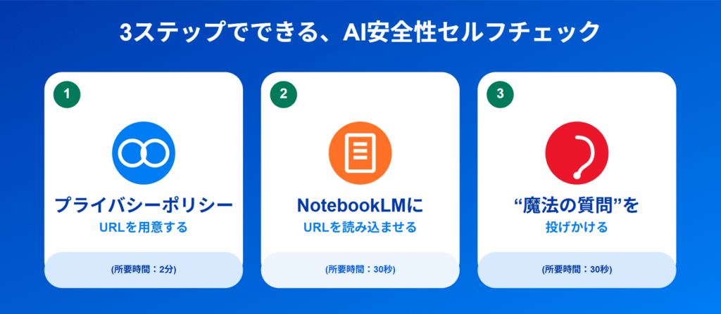 もう、専門用語だらけの英文と格闘する必要はありません。この3ステップだけで、あなたはどんなAIの安全性も、自分自身の手で客観的に判断できるようになったのです。