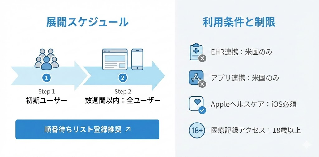 | 電子健康記録(EHR)連携 | 米国のみ |