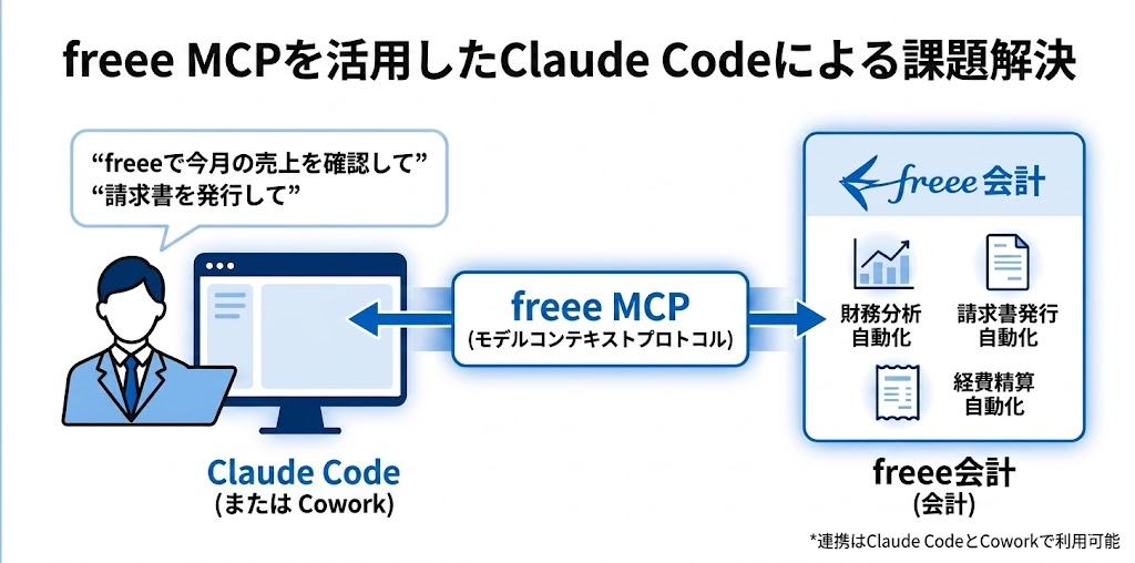 このMCPを設定すると、Claude Codeのチャット画面から自然言語で「今月の売上を確認して」「この取引先に請求書を発行して」と指示するだけで、freee上の操作が自動で実行されます。財務分析、請求書発行、経費精算といった作業がチャットだけで完結します。