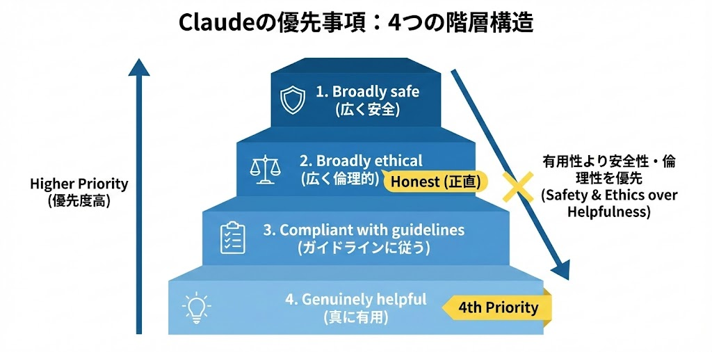 Claudeの憲法で特に重要なのが、4つの優先事項の階層構造です。