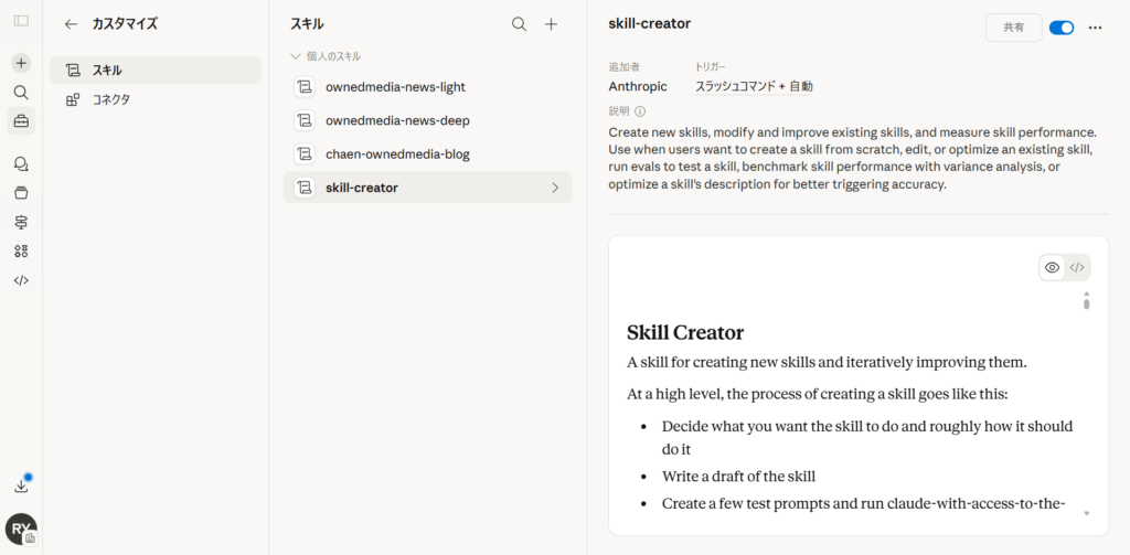Anthropicが公式に用意したプリセットスキルもあるので、最初はそれを試してみて、自分の業務に合わせてカスタマイズしていくのがおすすめです。