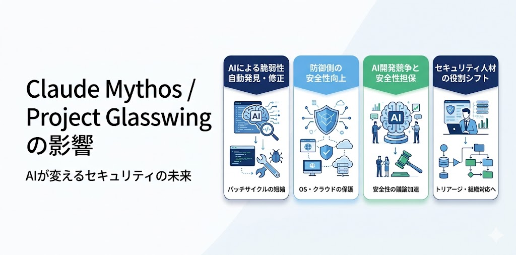 Project Glasswingにより、あなたが日常的に使っているOS・ブラウザ・クラウドサービスの脆弱性が、攻撃者に悪用される前に発見・修正される可能性が格段に高まります。