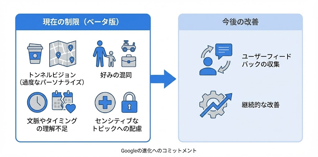 今はGmail・写真・YouTube・検索からの連携が中心ですが、今後は(ユーザーの同意や設計次第で)より広い行動データまで統合されていく可能性も十分あります。