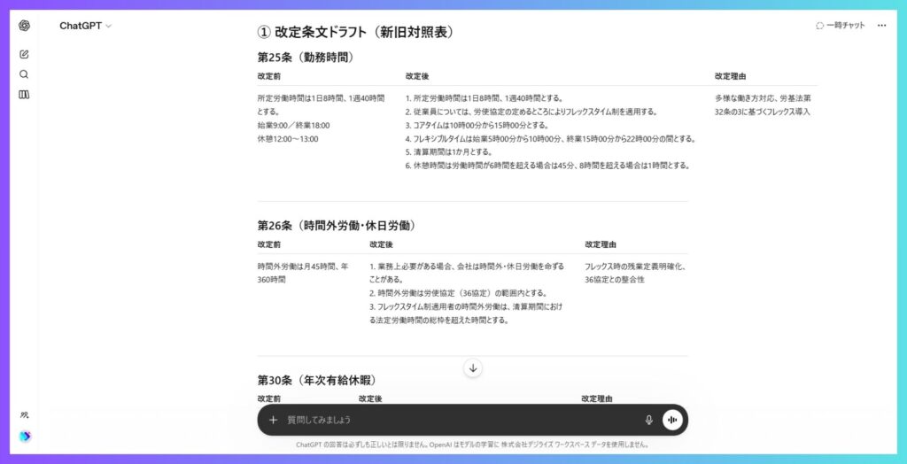 - 就業規則の改定や法令解釈については、必ず専門家(社会保険労務士・弁護士)の確認を経る