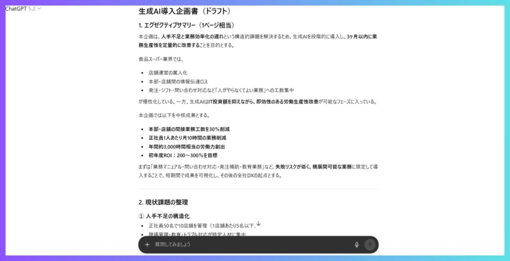 シーン: 生成AI導入の企画書を経営会議向けに作成したいとき