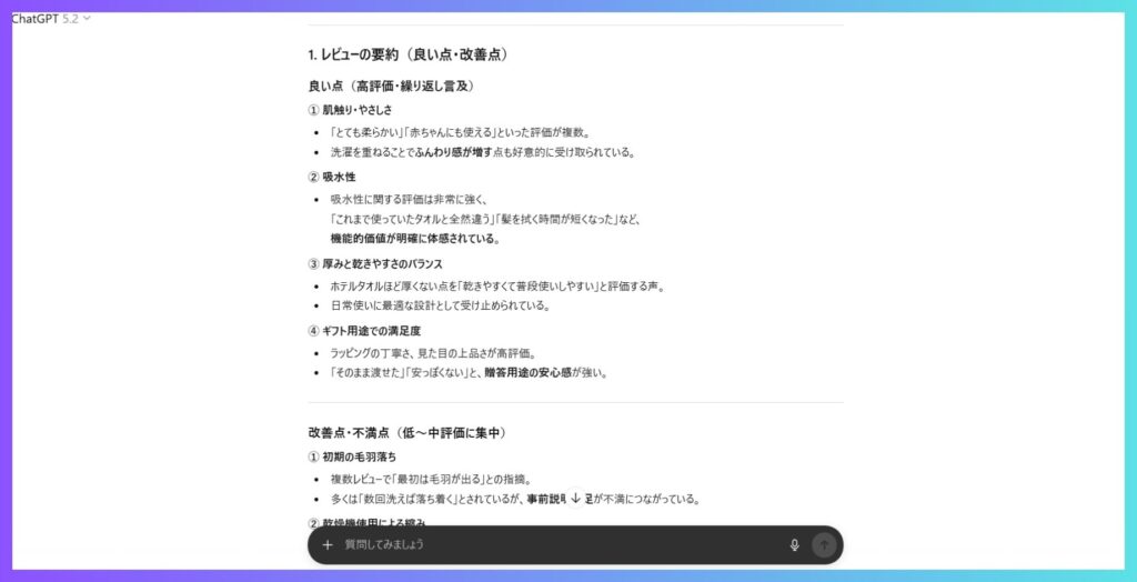- 調査時間を8時間から10分に短縮:海外論文や広告審査の根拠資料など、従来8時間かかっていた調査がわずか10分で完了