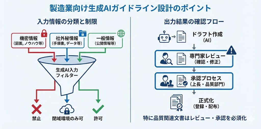製造業で生成AIを安全に活用するためのガイドライン設計のポイントを整理します。