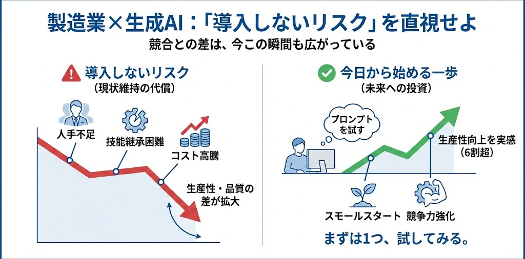 まとめ:製造業×生成AIは”導入しないリスク”を直視せよ