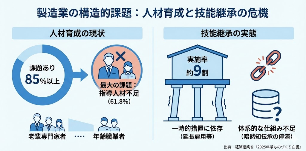 | 技能継承実施率 | 約9割(ただし一時的措置に依存) |