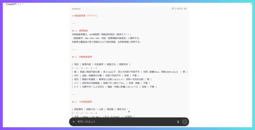 シーン: 新製品や工程変更に伴う検査基準書を効率的に作成したいとき