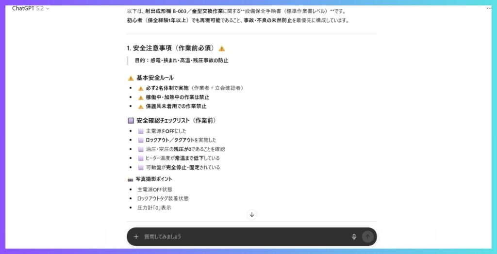 ここからが本記事の核心部分です!製造業の現場で実際に使えるシーン別のプロンプト例を厳選して15個ご紹介します。コピペしてすぐに使えるので、ぜひ明日から試してみてください。