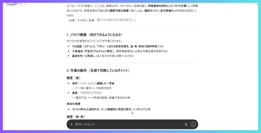 | 技術継承 | ベテランノウハウの文書化 作業標準書作成 教育資料生成 | 暗黙知の形式知化 育成期間短縮 | ★☆☆(低) |