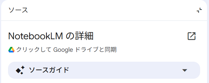 特に便利なのが、Googleドライブとの連携機能。Googleドキュメントやスライドをソースにした場合、元のファイルが更新されると、NotebookLM上でそのファイルを選択し「クリックしてGoogleドライブと同期」ボタンが表示されます。これをクリックするだけで、常に最新の情報に基づいた分析が可能になるのです。