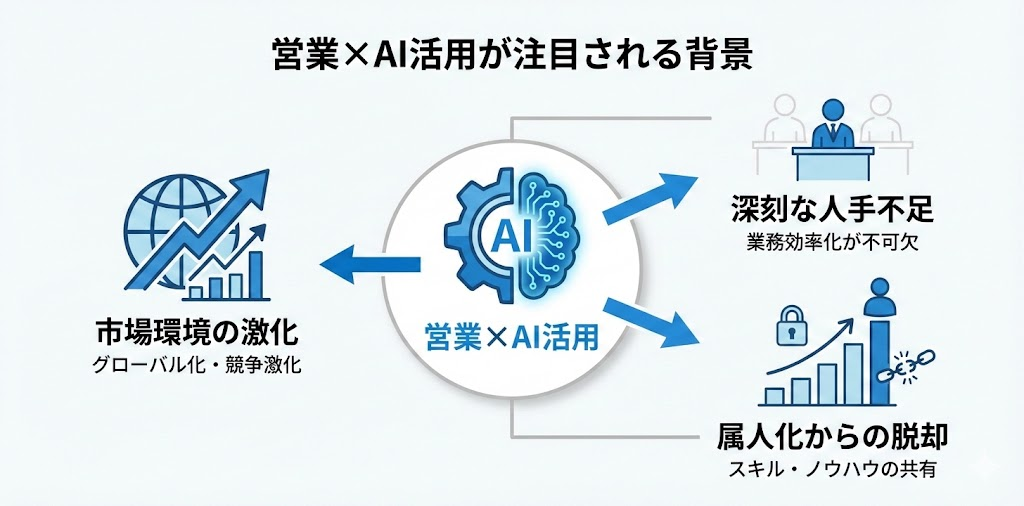 なぜ今、営業現場でのAI活用がこれほど注目されているのでしょうか。その背景には、大きく3つの要因があります。