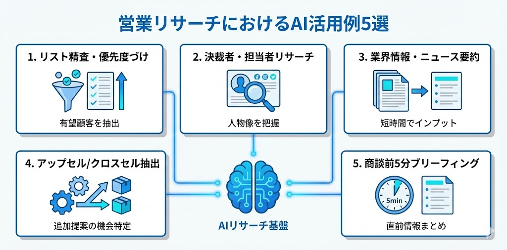 営業リサーチをAIで自動化する5つの方法|顧客分析・競合調査・商談準備を効率化