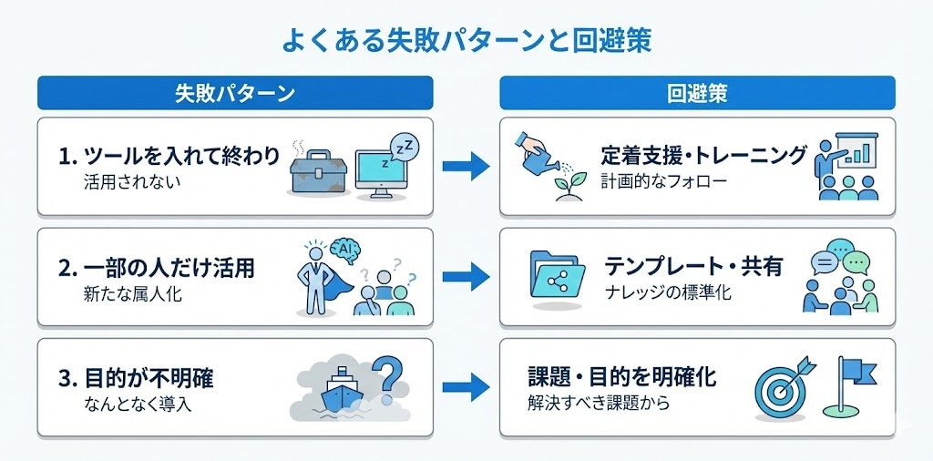 → 回避策:「何の課題を、どう解決したいのか」を明確にしてから導入を検討