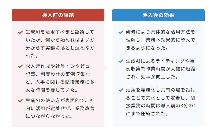 実際にAIを営業活動に導入した企業は、どのような成果を上げているのでしょうか。弊社(デジライズ)で生成AI研修を導入いただいた企業様の成果事例をご紹介します。